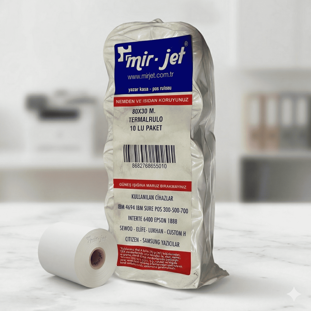 Geniş ölçüsü sayesinde daha uzun kullanım süresi sunan 80×30 termal rulolar, yoğun işlem hacmine sahip işletmeler için idealdir. Yüksek baskı kalitesi ile fişlerin net ve okunaklı olmasını sağlar.